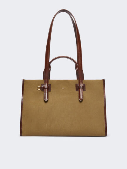 Borsa shopping in cotone e pelle – BRONZO