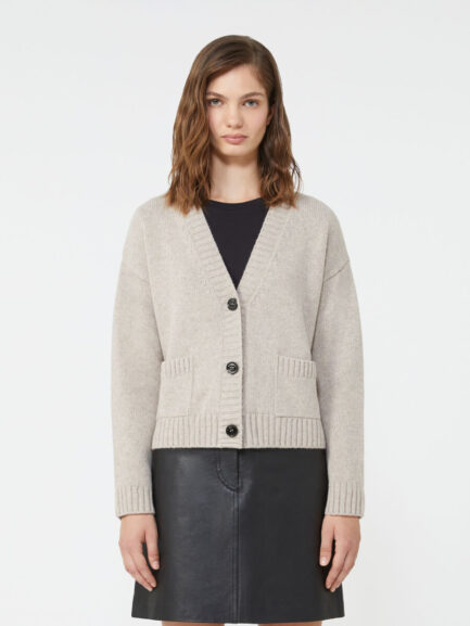 Cardigan in maglia di lana con scollo a V – SABBIA