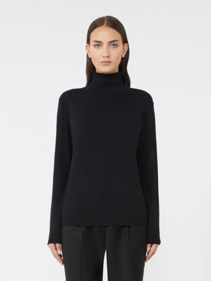 Dolcevita in maglia di lana e seta – NERO