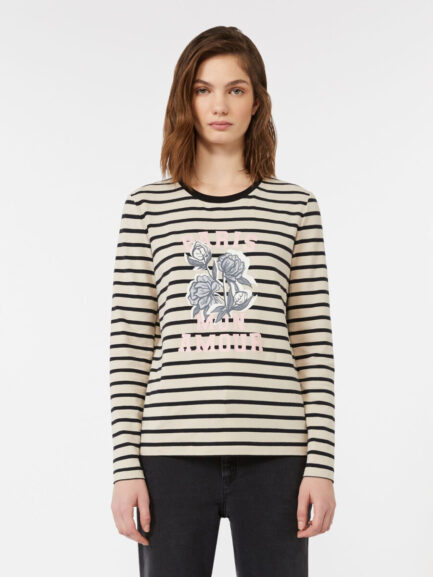 T-shirt in jersey con stampa e ricamo – BIANCA