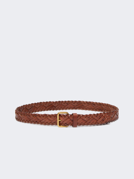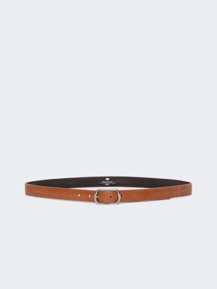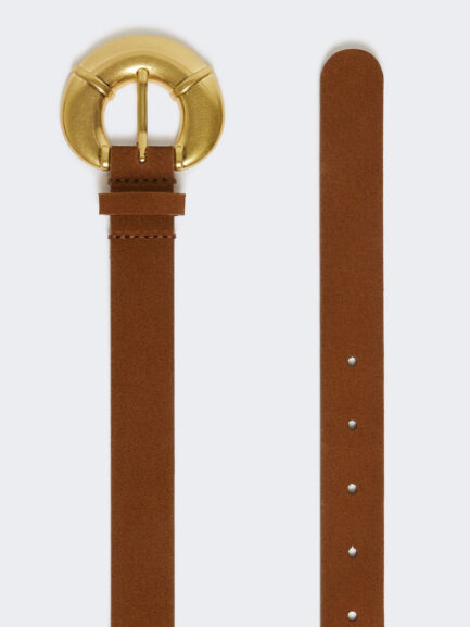 Cintura in pelle con dettaglio fibbia con marchio – TABACCO