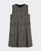Abito corto senza maniche con motivo plissettato sul lato e martingala in vita sul retro con bottoni sui lati.