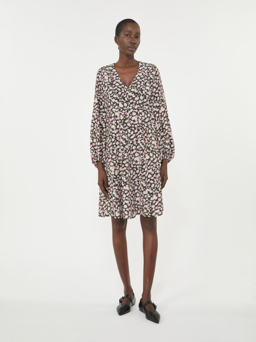 - Abito in crêpe de chine di pura seta stampata