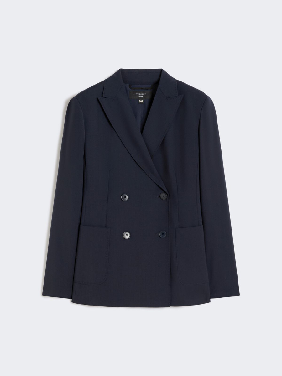 Blazer doppiopetto dal design sartoriale e dal taglio leggermente aderente.