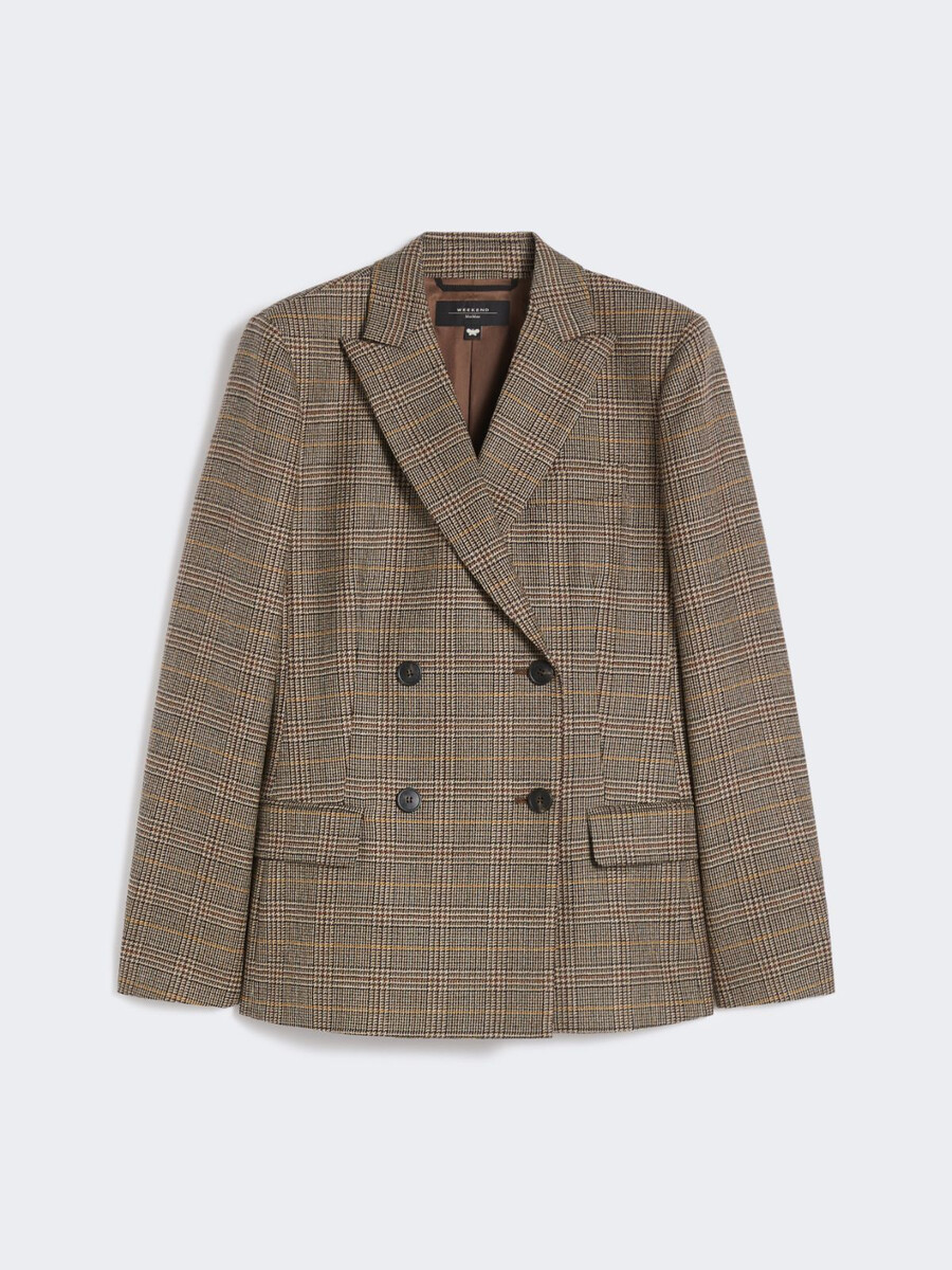 Blazer doppiopetto sartoriale con fantasia di ispirazione maschile, con spacco centrale sul retro.