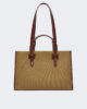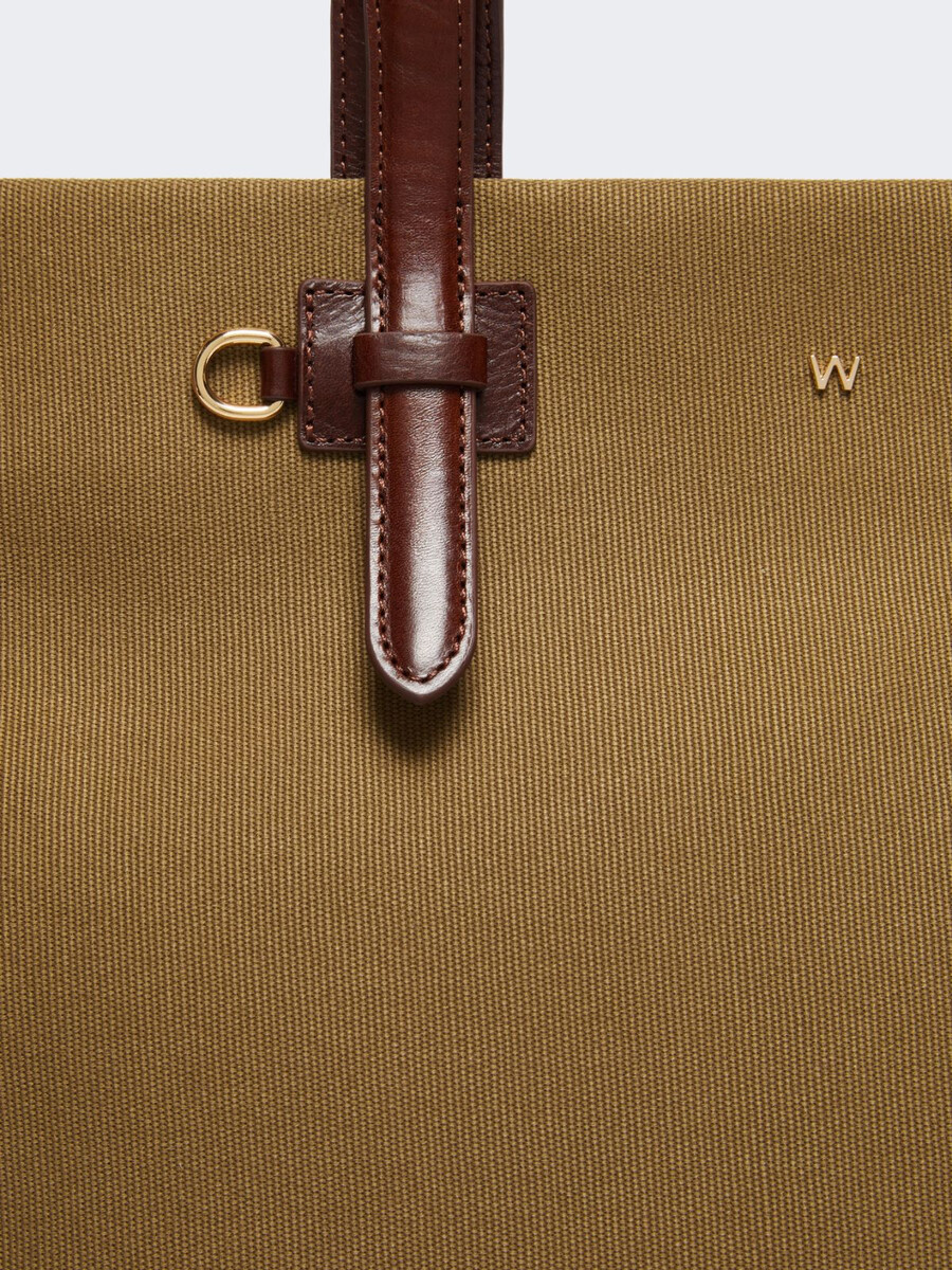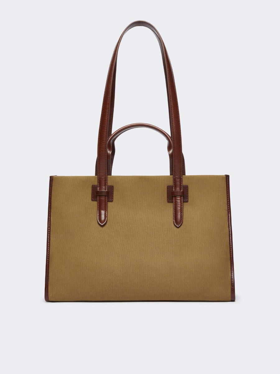 - Borsa in tela di puro cotone con dettagli in pelle