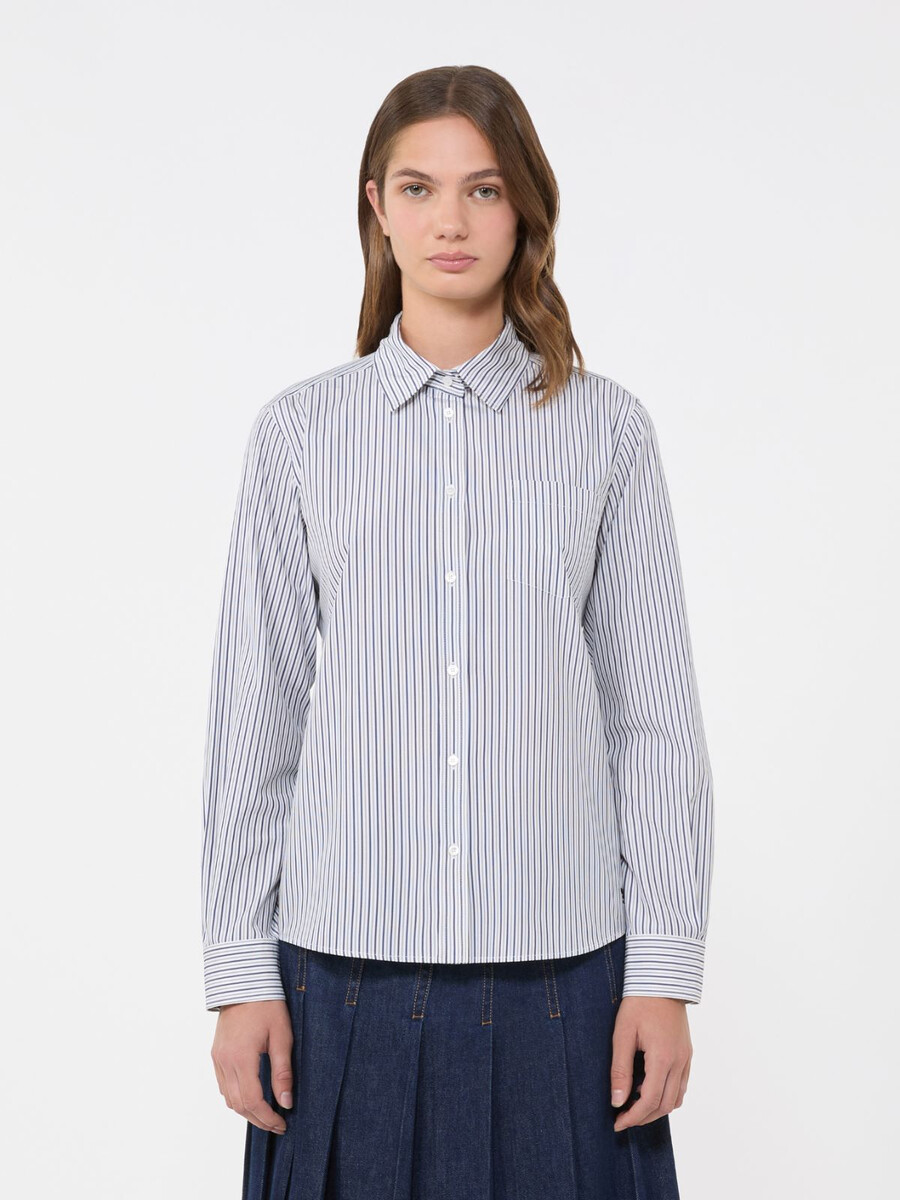 Camicia classica con piccolo logo a farfalla ricamato sull’orlo anteriore sinistro.