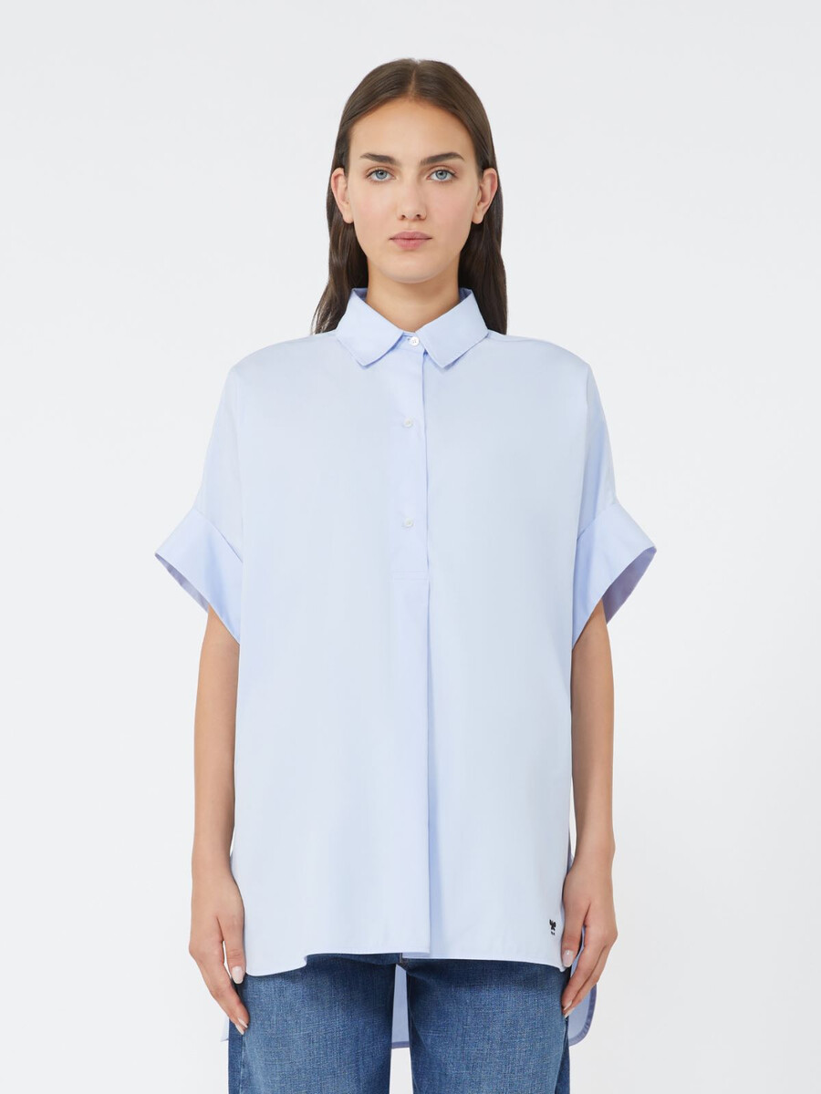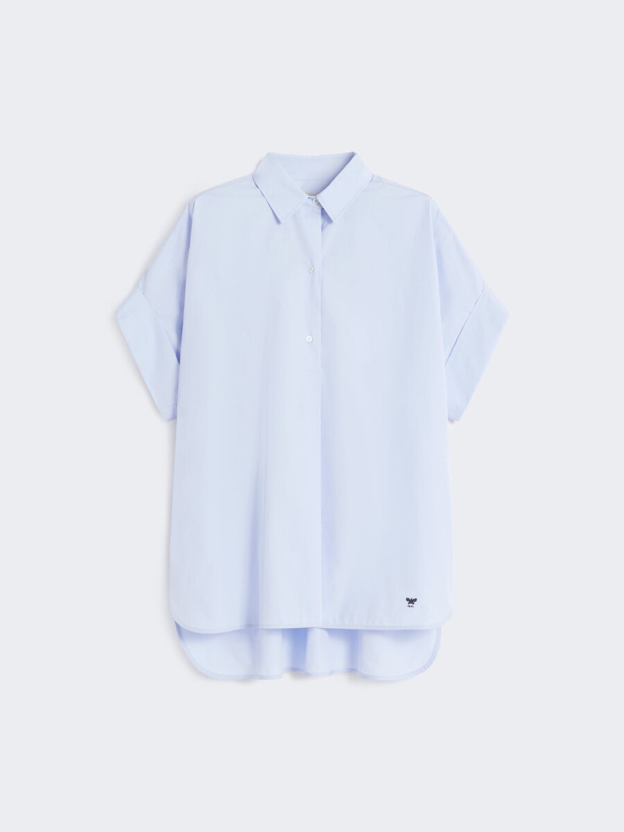 Camicia con colletto stile polo e chiusura a 3 bottoni a vista.
