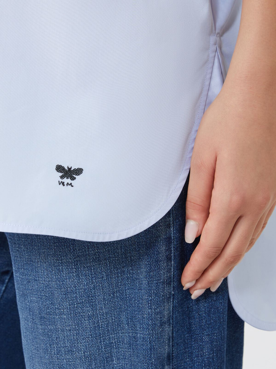 - Piccolo logo a farfalla ricamato sull’orlo sinistro