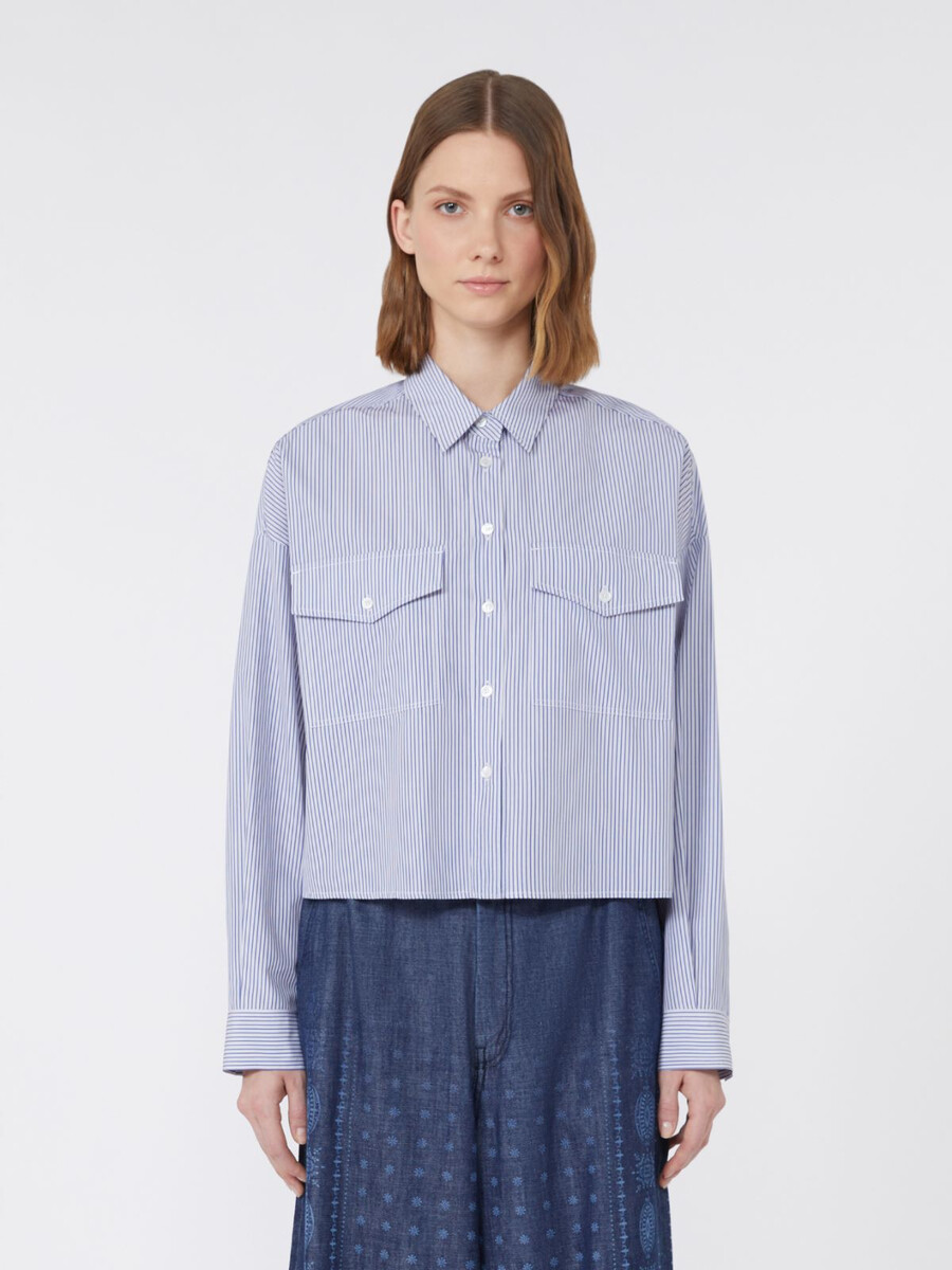 Camicia corta con inserto in twill tecnico stampato a contrasto sul retro.