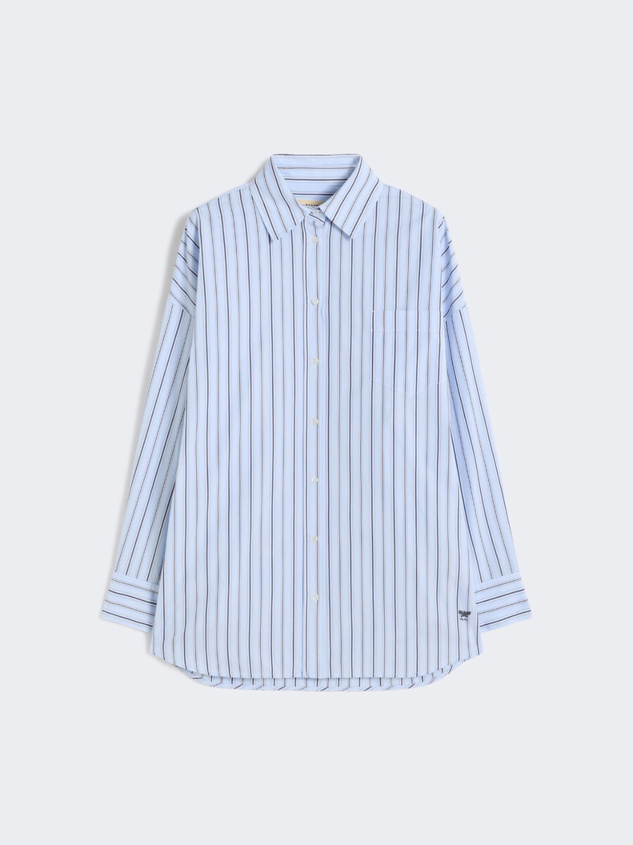 Camicia lunga oversize con taschino sul petto e ricamo a farfalla.