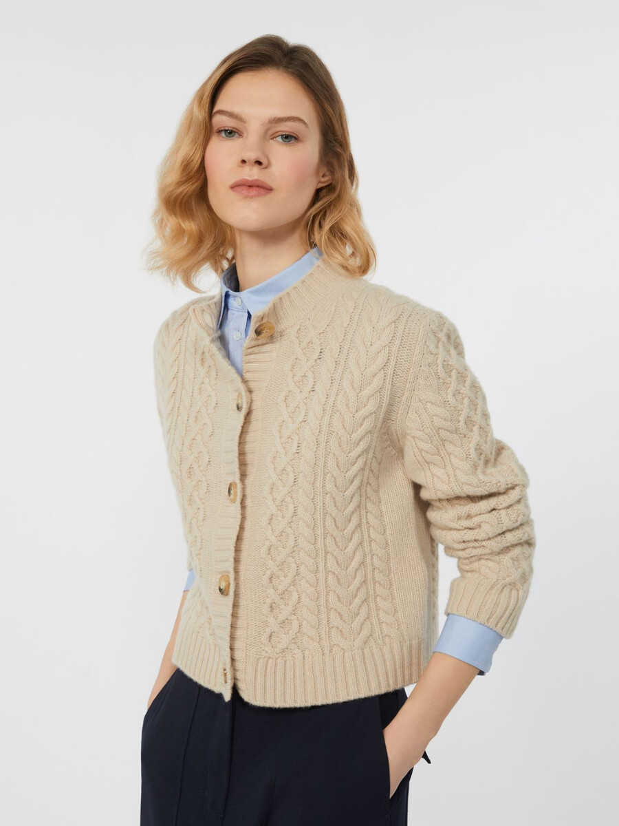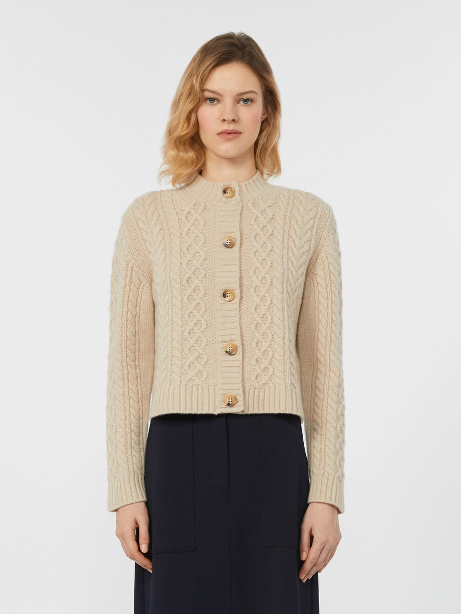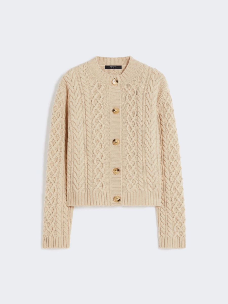 Cardigan impreziosito da una lavorazione a trecce ispirata ad Aran.