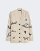 Cardigan oversize, impreziosito da una lavorazione a intarsio che crea disegni sul davanti e sulle maniche.