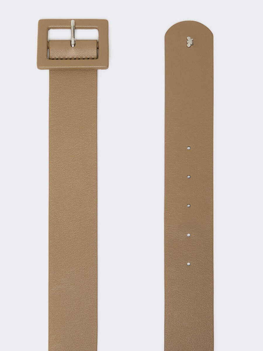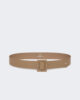 Cintura con fibbia quadrata rivestita in tessuto coordinato.