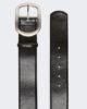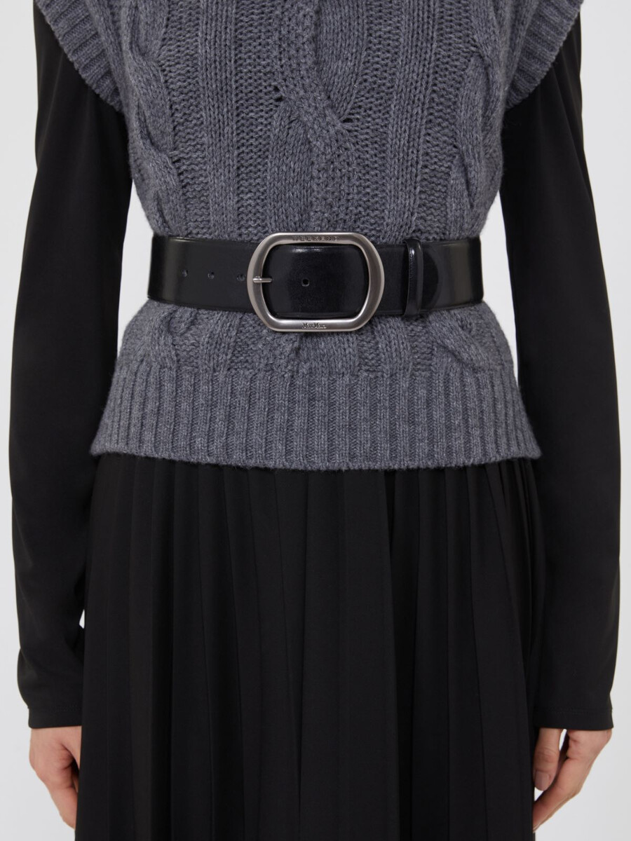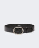 Cintura alta con fibbia ovale ad ardiglione in metallo galvanizzato e logo inciso.