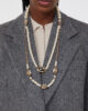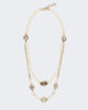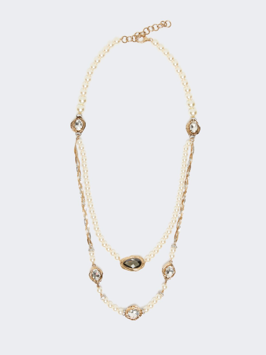 Collana a doppio filo composta da perle con elementi metallici e cristalli sfaccettati incastonati.