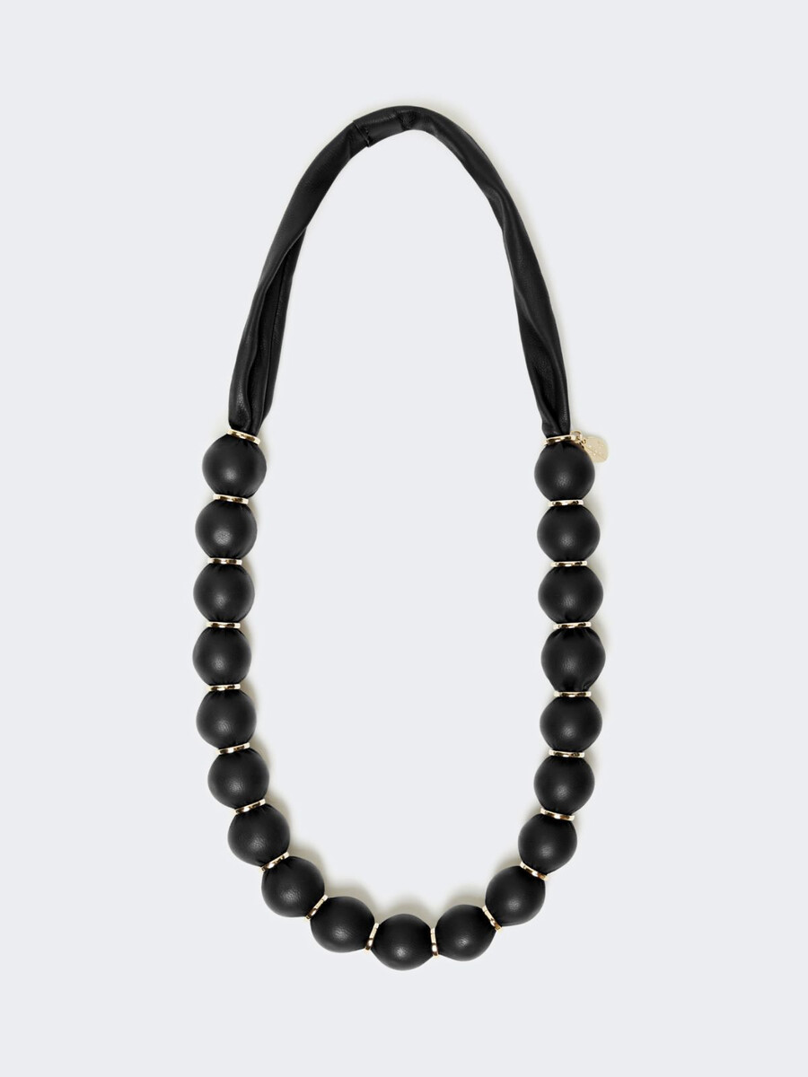 Collana lunga composta da dettaglio maxi sfera rivestita in pelle.