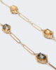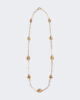 Collana a catena lunga composta da ciondoli in metallo con maxi strass incastonati al centro.