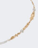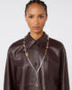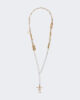 Collana lunga composta da elementi metallici di diverse forme e dettagli in strass.