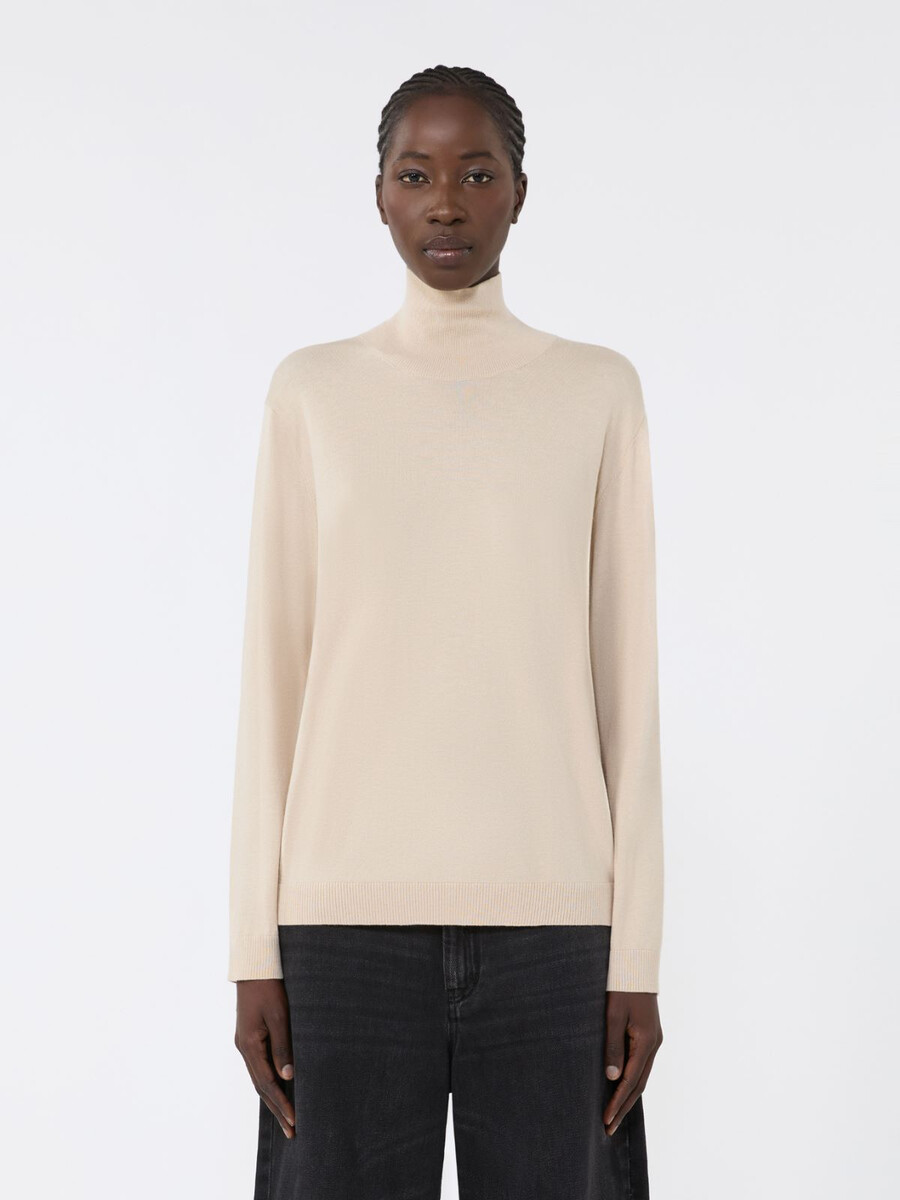 Maglione a collo alto in maglia semplice.