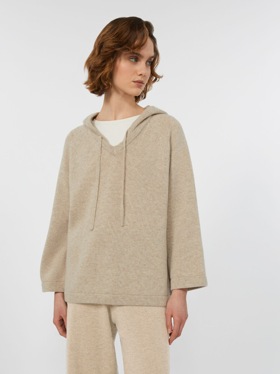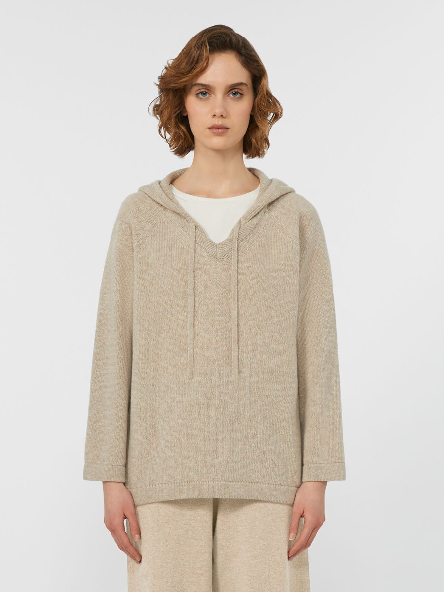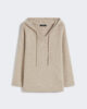 Maglione ispirato al jogging con scollo a V e cappuccio con coulisse, effetto doppio strato.