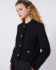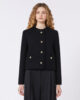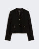 Giacca monopetto corta con una particolare texture leggermente goffrata e finiture con frange.