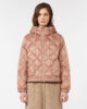 Giacca corta in piumino d’oca con cappuccio con coulisse e motivo a rombi trapuntato all-over.