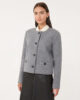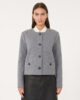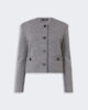 Giacca girocollo in jersey di lana cotta con maniche lunghe e tasche a filetto con patta. Il capo presenta finiture a taglio vivo e chiusura con bottoni.