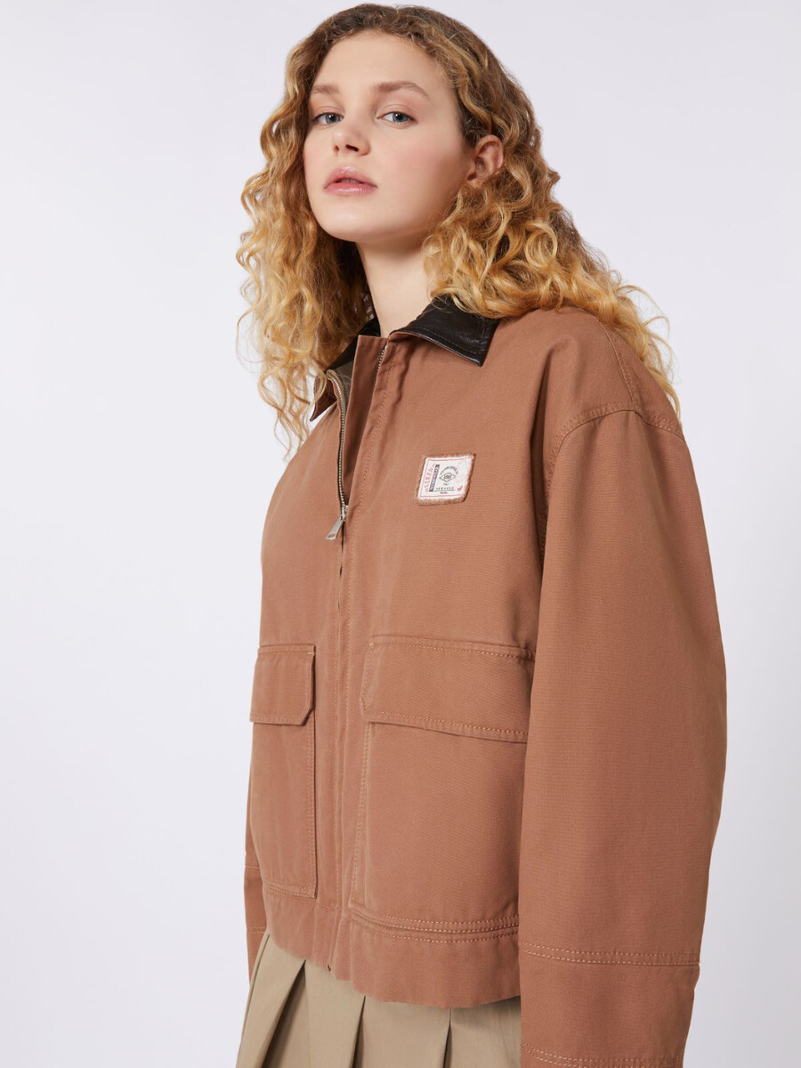 • Colletto a camicia in tessuto spalmato effetto vintage