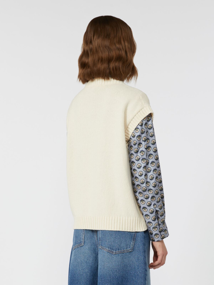 Gilet decorato con dettaglio intarsiato sul davanti e finiture in maglia a coste