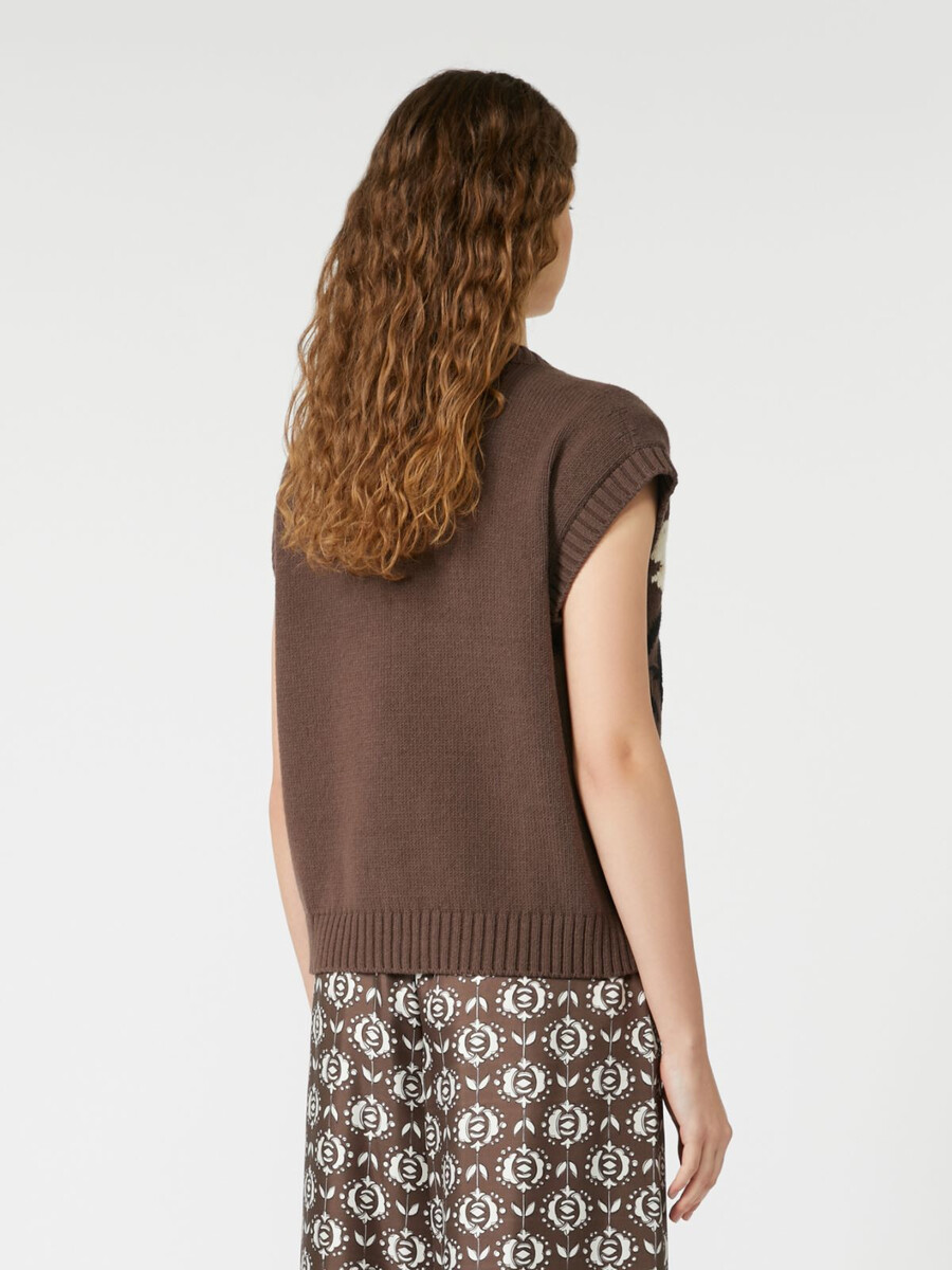 Gilet decorato con dettaglio intarsiato sul davanti e finiture in maglia a coste