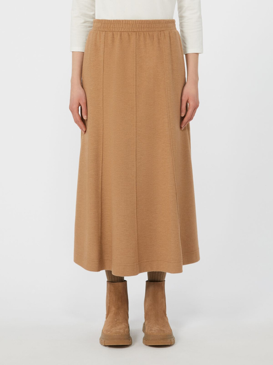 - Gonna realizzata in jersey effetto drappeggio in misto lana e cotone