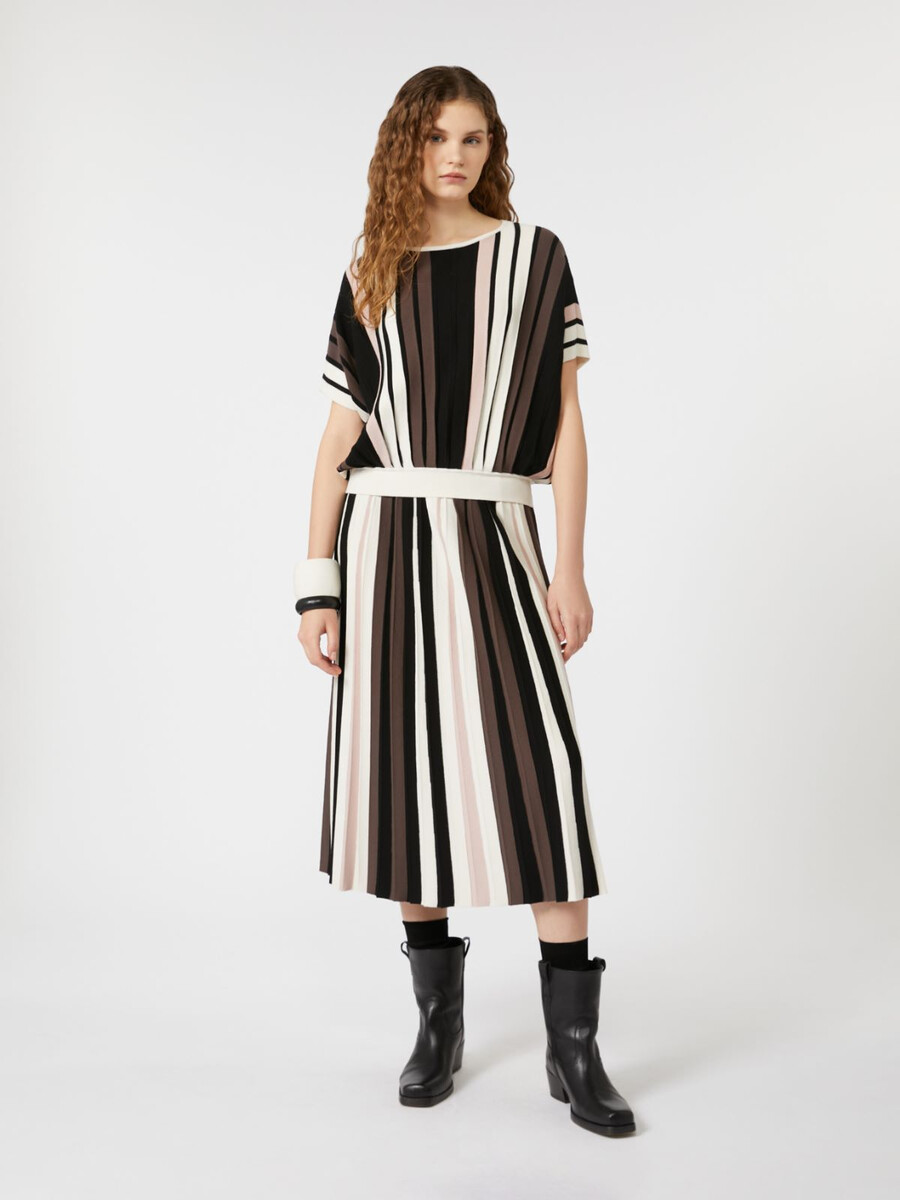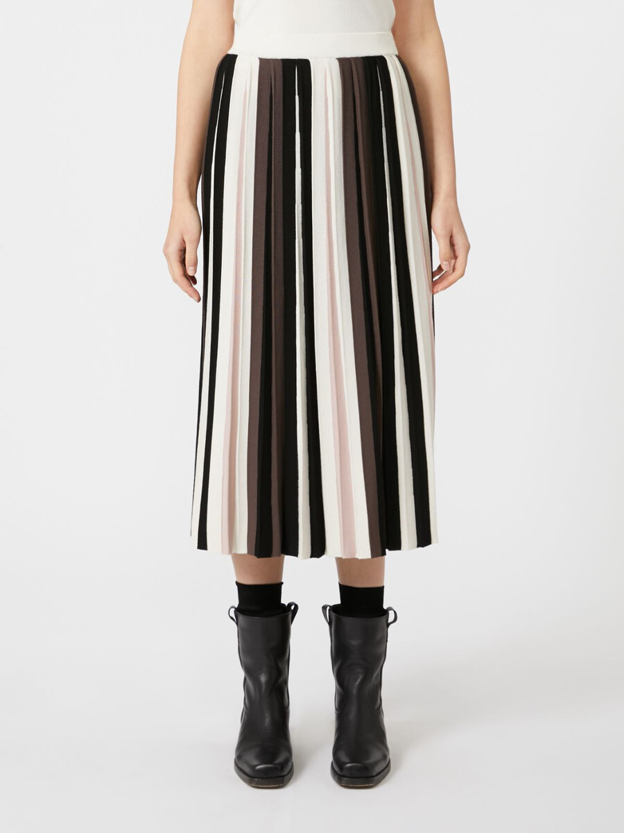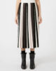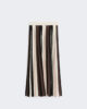 Gonna lunga plissettata con motivo a righe verticali e intarsi.