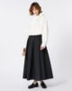 Gonna lunga dal volume ampio e con motivo arricciato che dona movimento e struttura al capo.