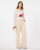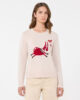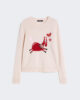 Maglione girocollo personalizzato con dettaglio della collezione intarsiato sul davanti.