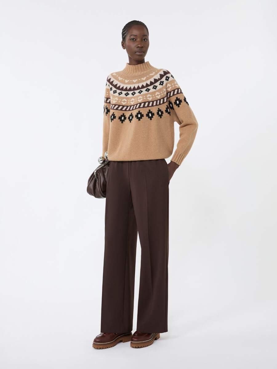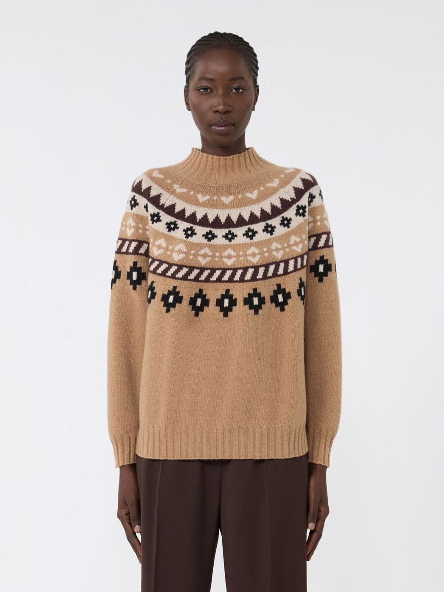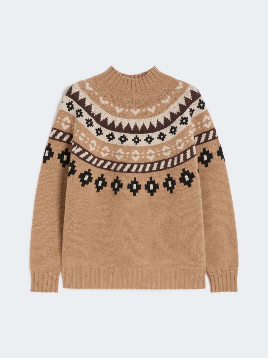 Maglione con lavorazione jacquard che crea un motivo a contrasto su tutto il carré.