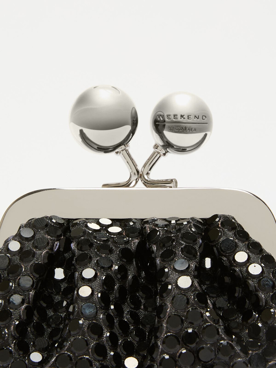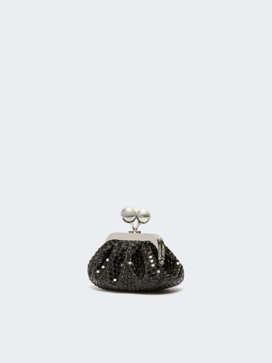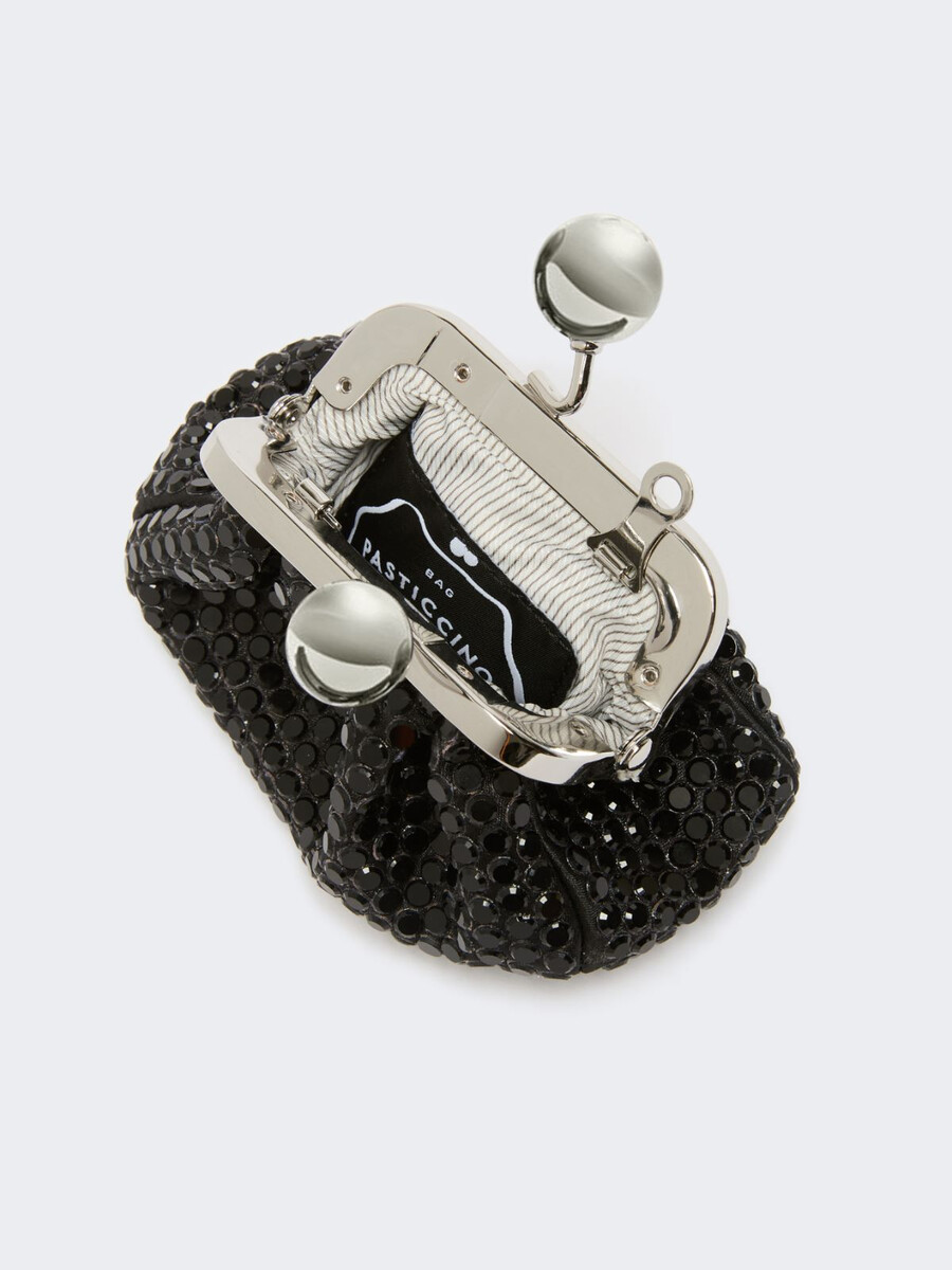 - Borsa in raso interamente ricoperta da un pavé di strass termosaldato