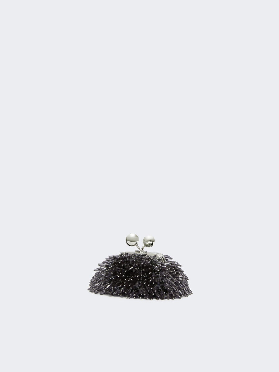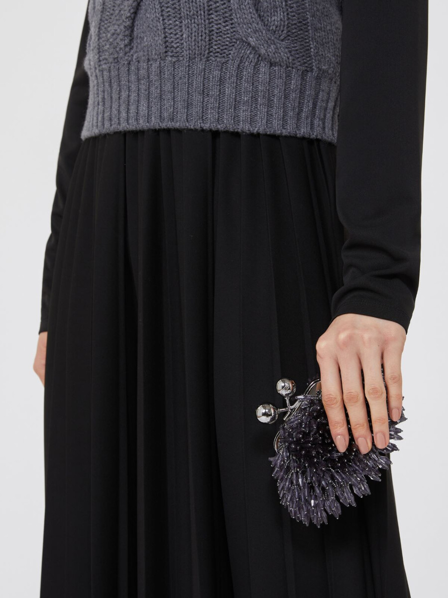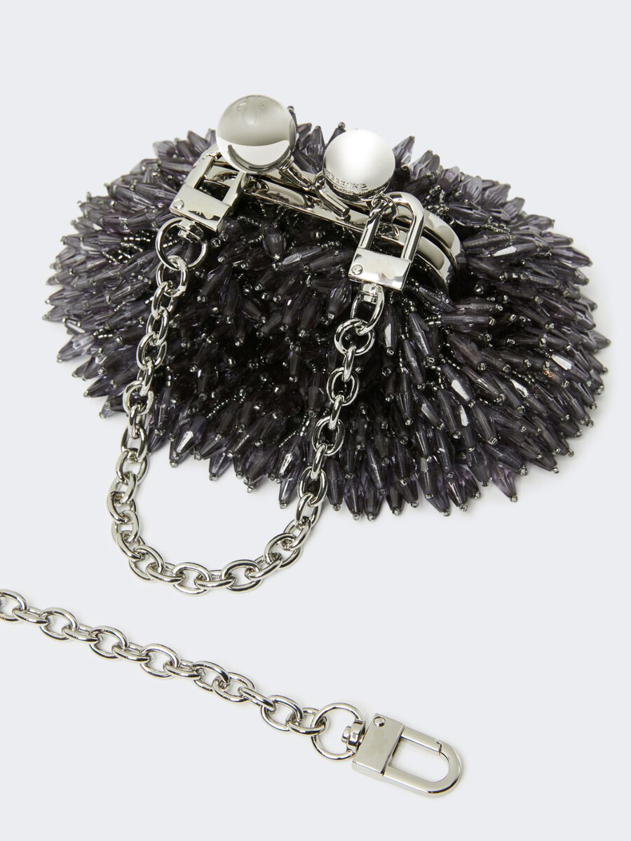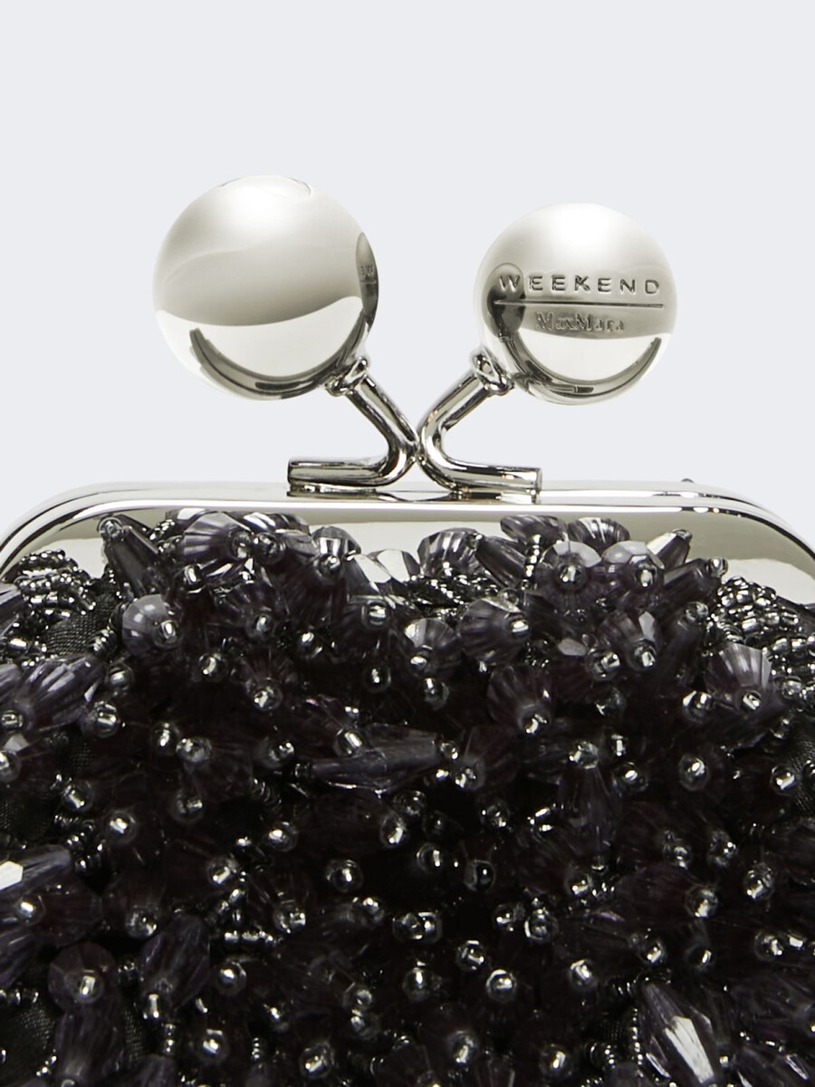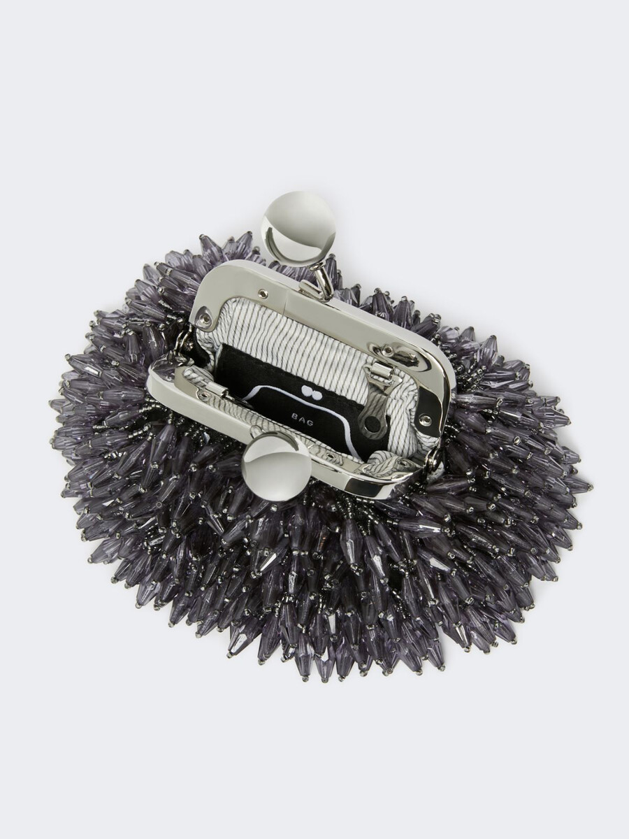 • Borsa in raso con una pioggia di strass ricamati