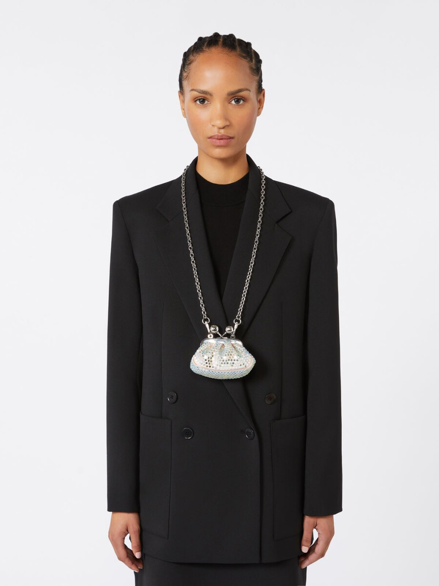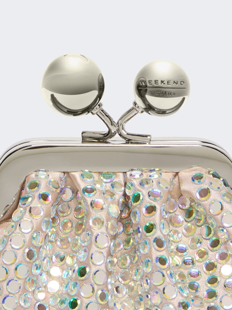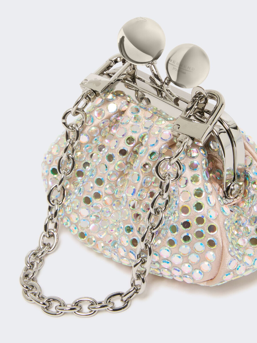 - Borsa in raso interamente ricoperta da un pavé di strass termosaldato