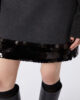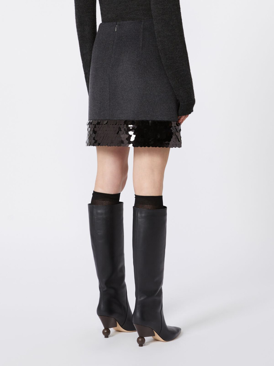 Gonna corta a trapezio, impreziosita da grandi paillettes applicate sull’orlo.