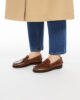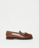 Simbolo dell’amata estetica preppy americana, il leggendario Penny Loafer Dan, nato negli anni ’50 tra gli studenti della Ivy League sulla costa orientale, è celebrato nella collaborazione Sebago x Weekend Max Mara. Realizzato in morbida pelle spazzolata con cuciture a mano, presenta una soletta in pelle e una suola in cuoio naturale impermeabile con tacchetti in gomma stampata. Reinterpretato in chiave contemporanea, continua a rappresentare un perfetto equilibrio tra tradizione e stile moderno.