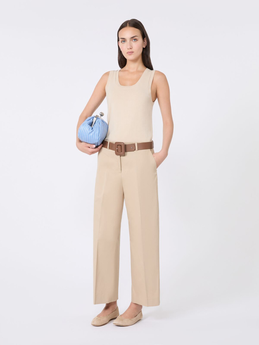 - Pantaloni in raso di cotone elasticizzato lavato.