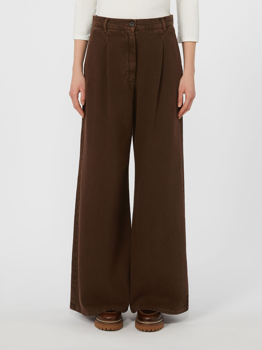 Pantaloni ampi con pieghe in vita sul davanti che donano volume.