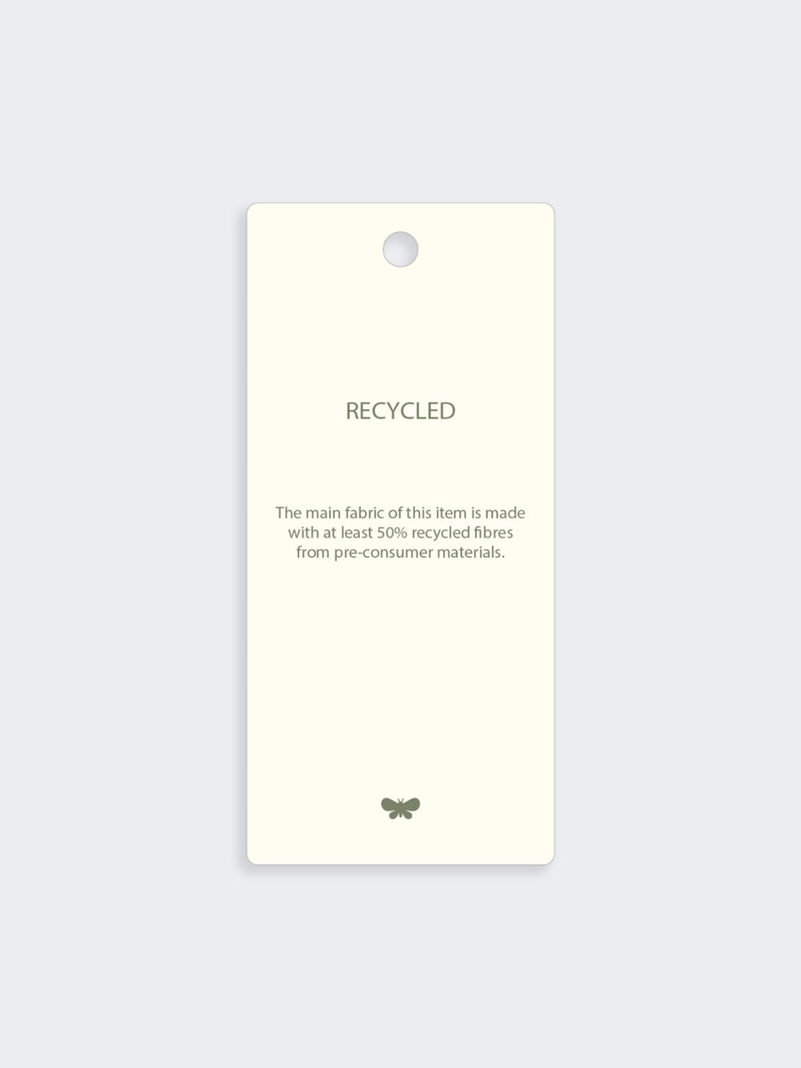 - Tessuto principale con almeno il 50% di fibra di cotone riciclato