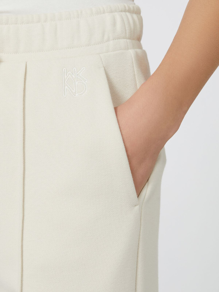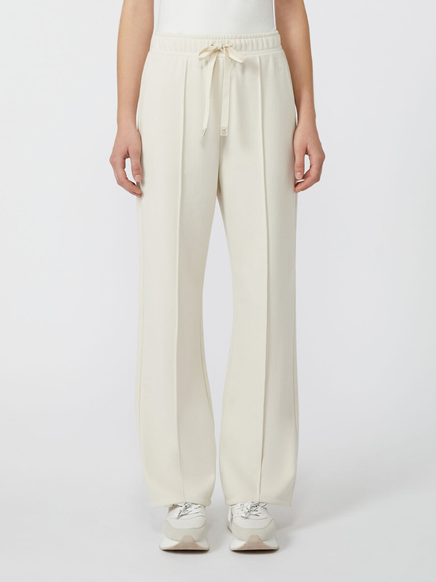 Pantaloni dalla texture morbida con gamba ampia e dettaglio di piega cucita sul davanti.
