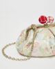 Torna il Pasticcino Bag World Tour, questa volta in Giappone, dopo le tappe di Venezia e Parigi. Un viaggio alla scoperta di tradizioni secolari e dell’eccellenza artistica del Paese del Sol Levante, che spazia dalle raffinate tessiture dei kimono tradizionali all’antica arte della tessitura a telaio. La Pasticcino Bag Treasure of Japan cattura l’essenza di questo viaggio: l’eleganza e la grazia giapponesi si fondono in un accessorio dal fascino e dallo stile inconfondibili. Il raffinato modello in raso di pura seta è impreziosito da un delicato motivo floreale jacquard all-over. Questa stagione, l’iconica chiusura a scatto in stile clutch è stata rivestita in corda di seta lavorata a mano, mentre la montatura in metallo presenta il logo Weekend Max Mara. Etichetta interna con logo. Il modello in edizione limitata presenta il numero inciso sulla montatura. Dimensioni: 19 x 10 x 15 cm.