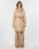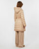 Piumino midi reversibile: un lato è caratterizzato da un motivo a righe orizzontali trapuntate all-over, l’altro è completamente liscio