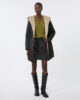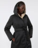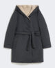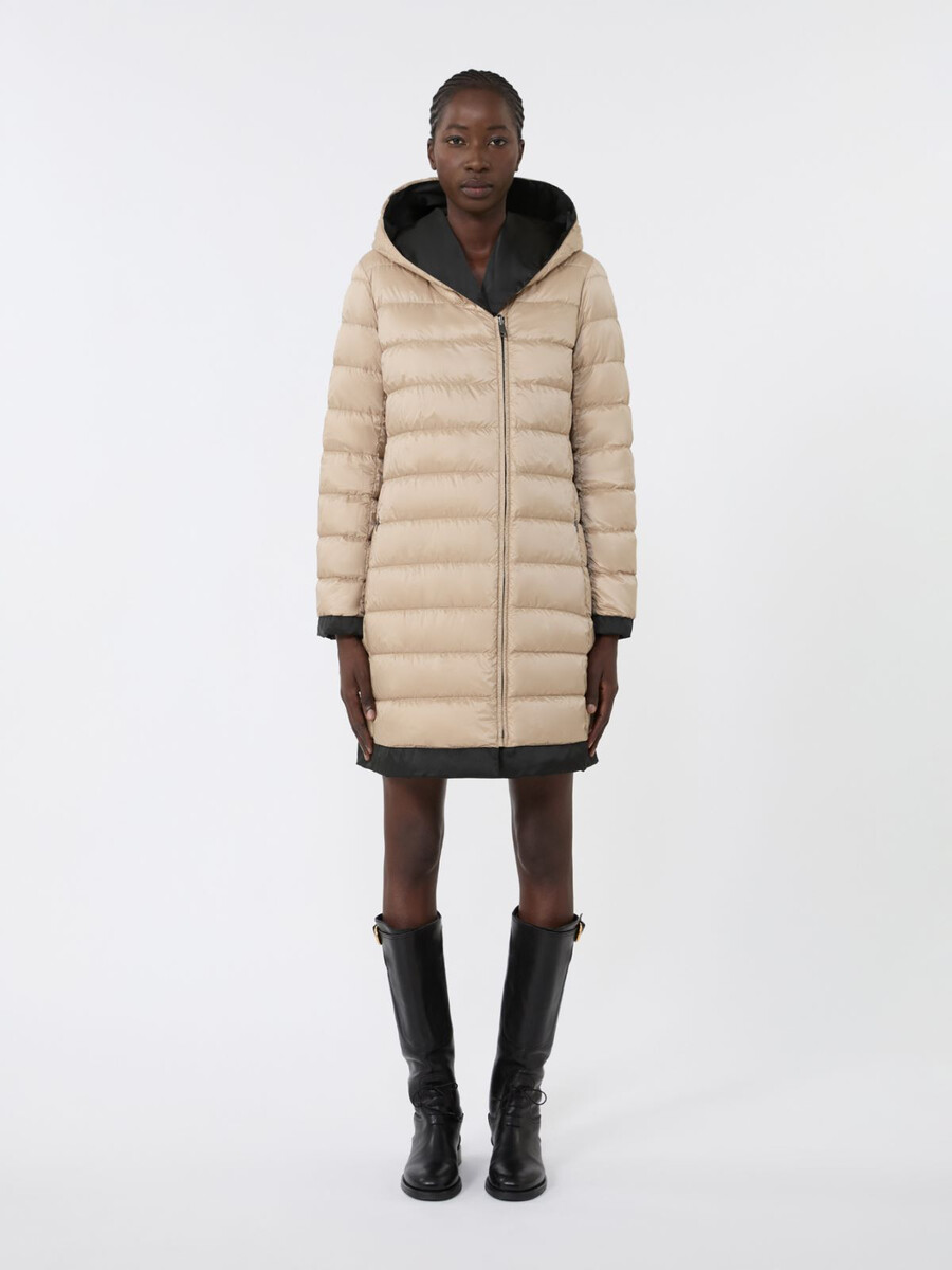 Piumino midi reversibile: un lato è caratterizzato da un motivo a righe orizzontali trapuntate all-over, l’altro è completamente liscio