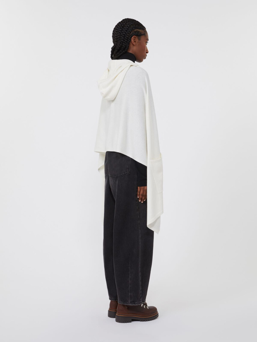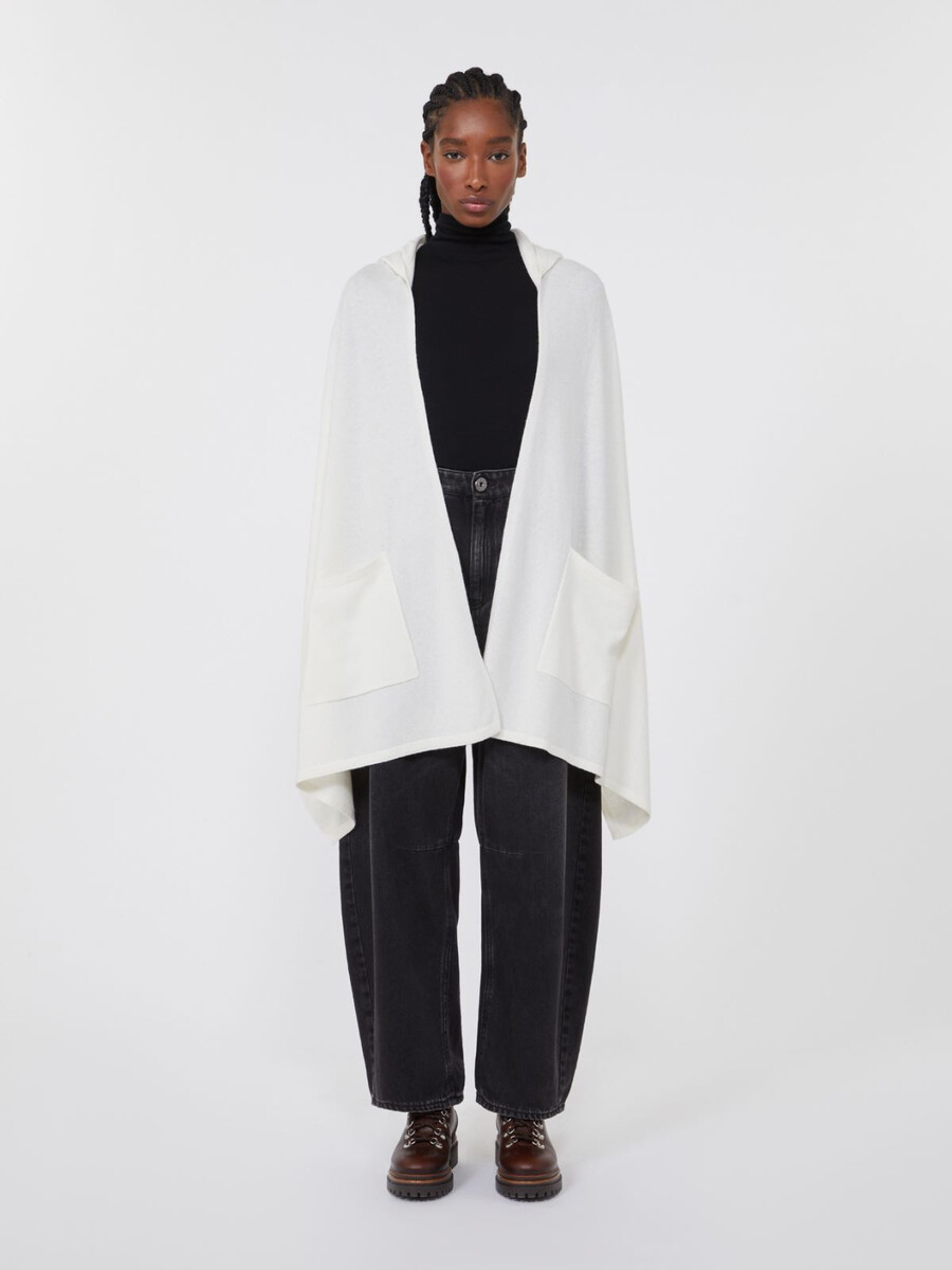 Scialle con cappuccio in cashmere – BIANCO OTTICO