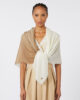 Scialle in pura lana personalizzato con effetto tie-dye e dettaglio logo farfalla ricamato.